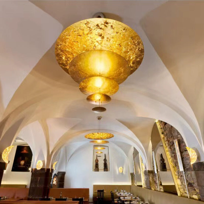 • Features a striking overhanging design adorned with shimmering gold leaf.