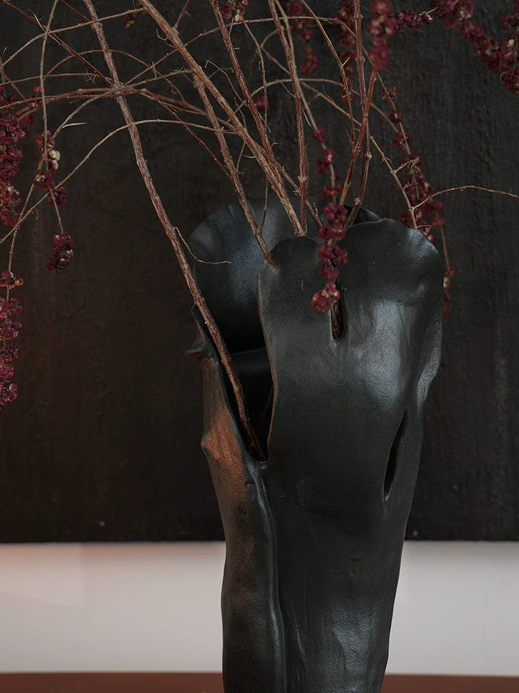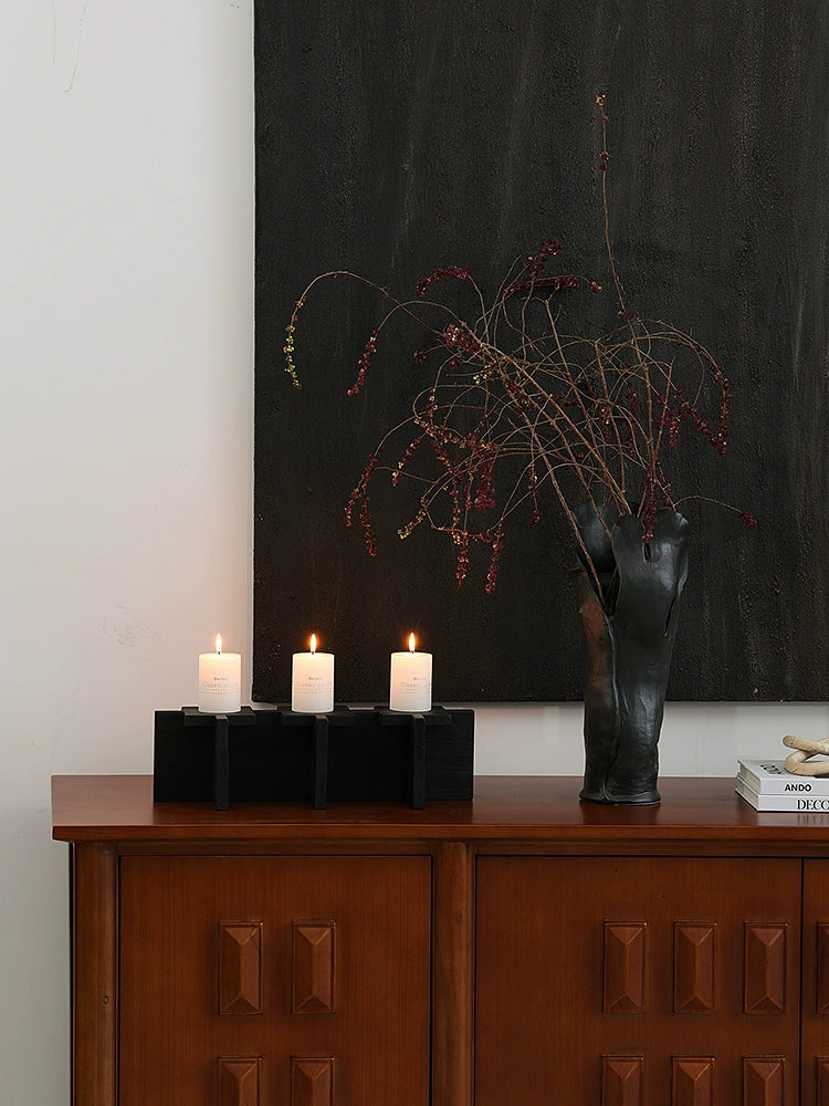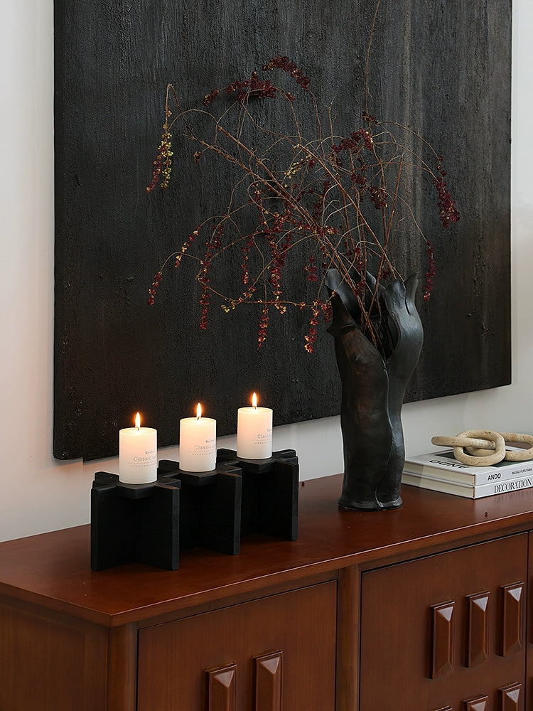 Elevate your living space with the Charcoal Wood Candlestick and Ceramic Vase from Maloona. This exquisite antique-style decoration adds a touch of elegance to any entrance, beautifully showcasing your favorite flower arrangements.