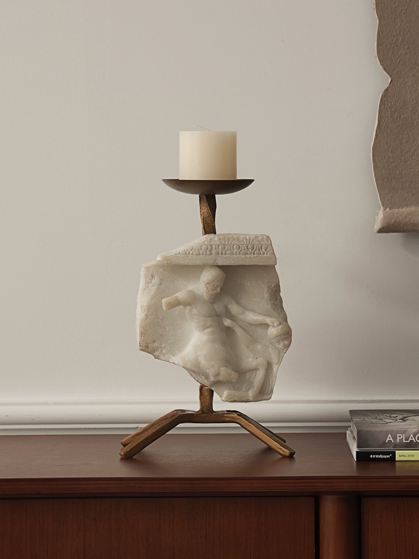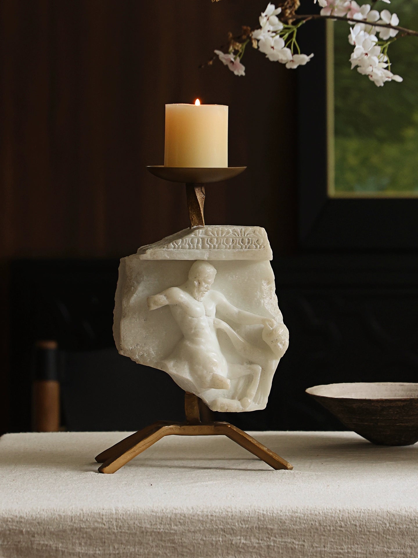 Elevate your space with the Maloona French Classical Sculpture Fragment Candle Holder. This exquisite piece combines medieval charm with a retro jade finish, creating a warm and inviting atmosphere for any setting.