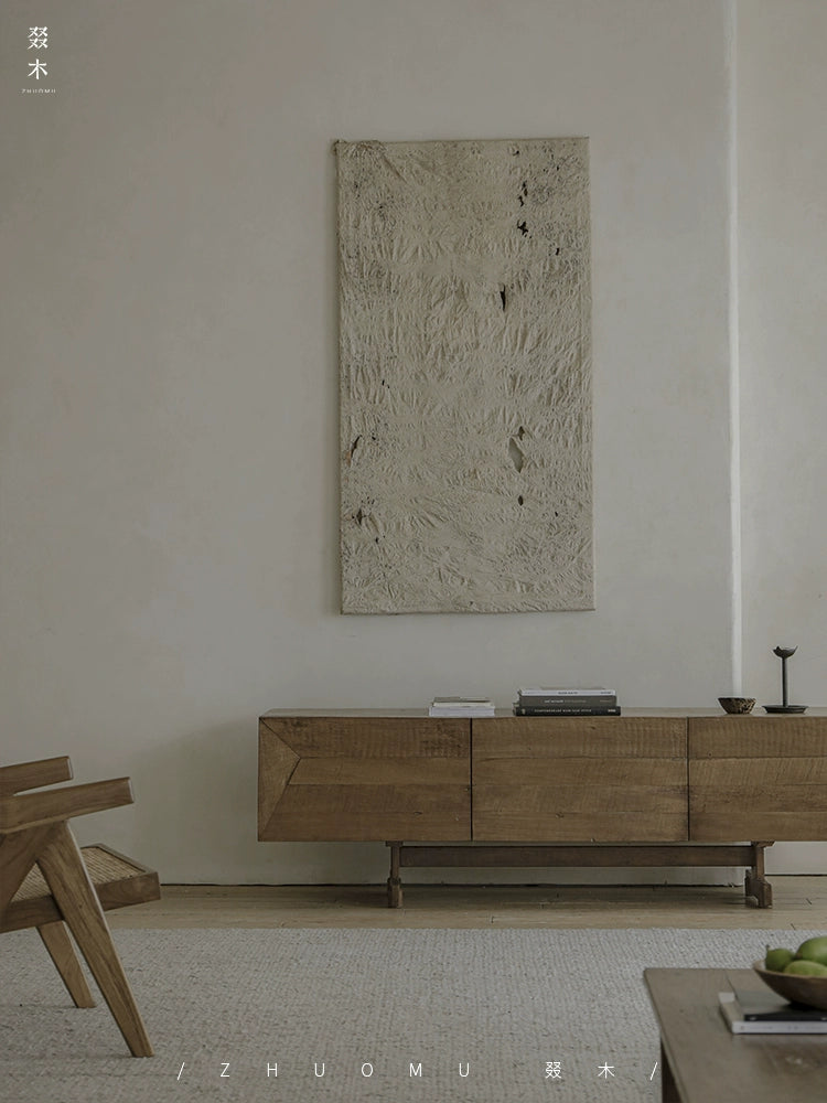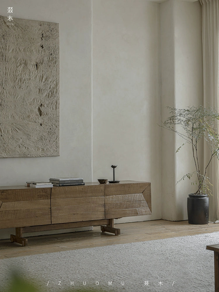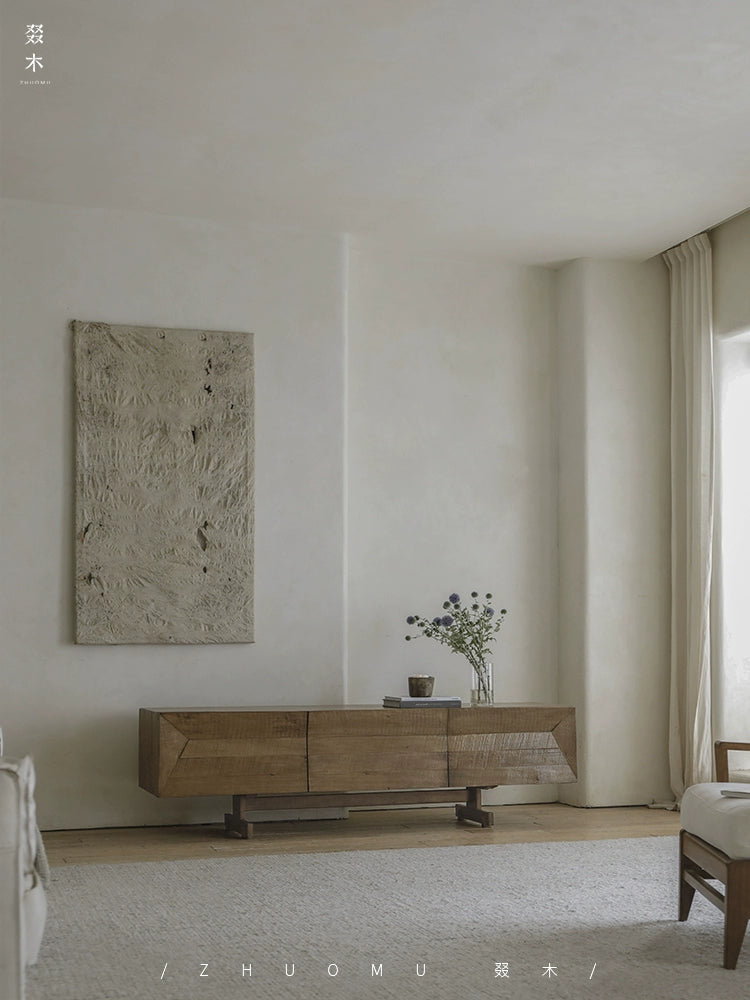 Elevate your living space with the Maloona Japanese Wabi-Sabi TV Cabinet, a perfect blend of vintage charm and modern functionality. Crafted from solid wood, this designer piece embodies the beauty of imperfection, making it an ideal addition to both guesthouses and stylish homes.