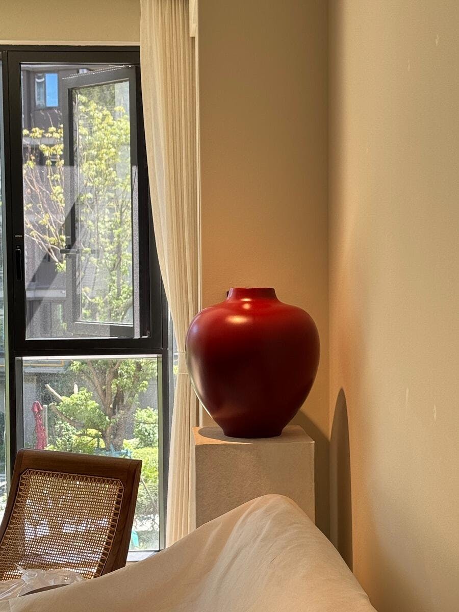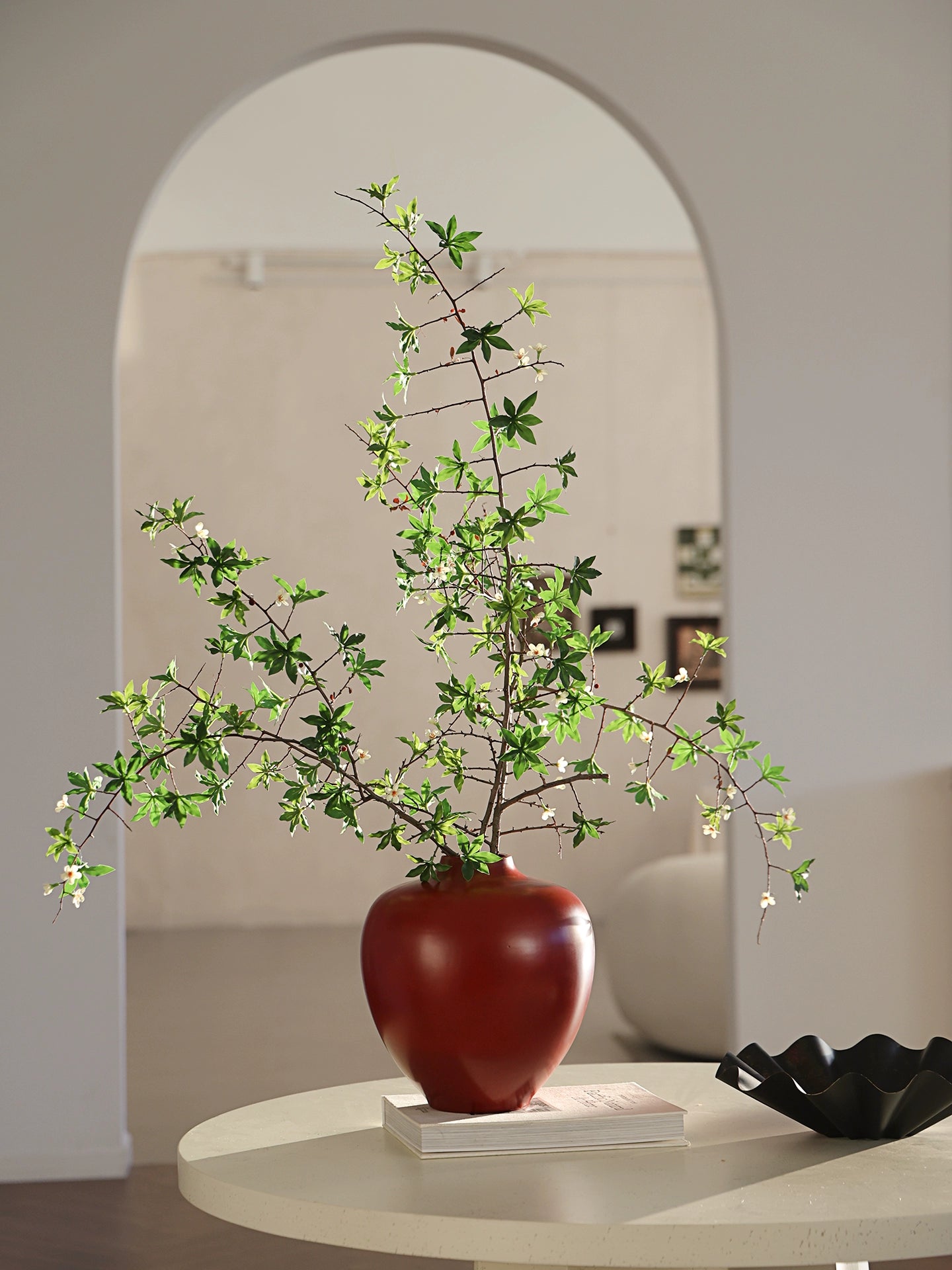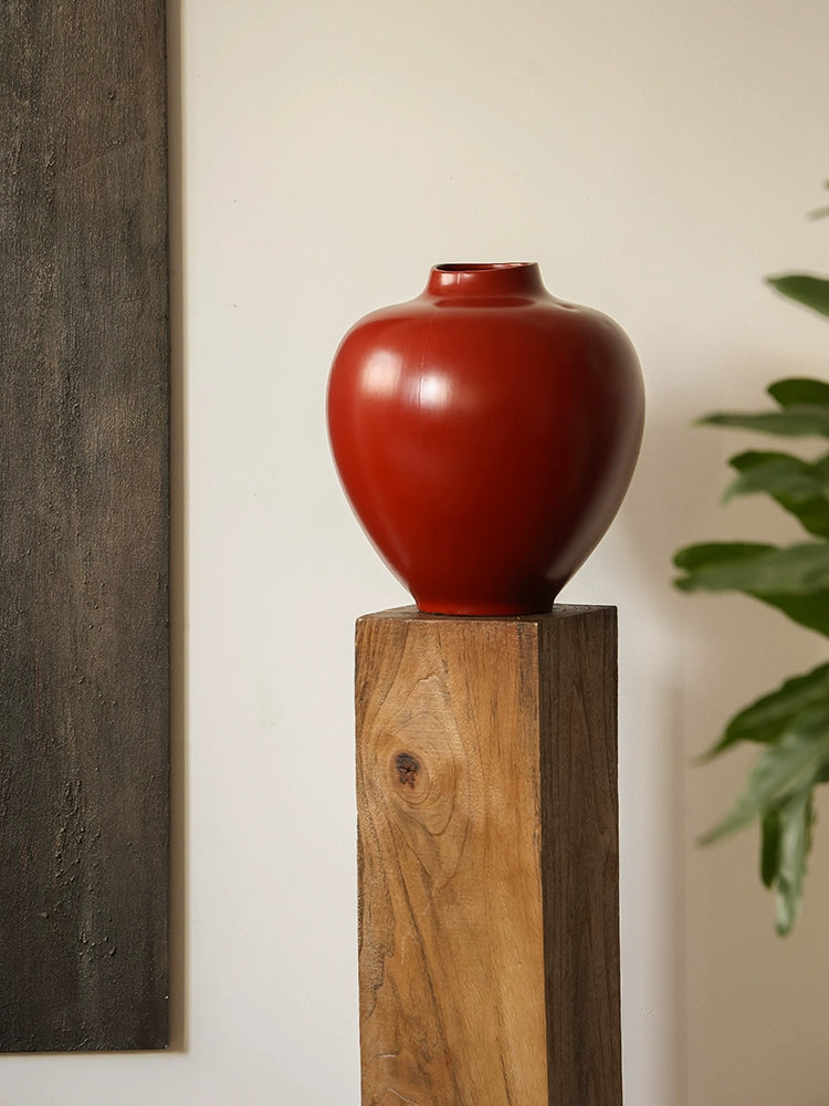 Elevate your space with the Medium-Ancient Style Carmine Jar, a stunning centerpiece that combines retro charm with modern elegance. Featuring a solid wood base, this large vase is perfect for floor-to-ceiling decoration in any sales office or home setting.