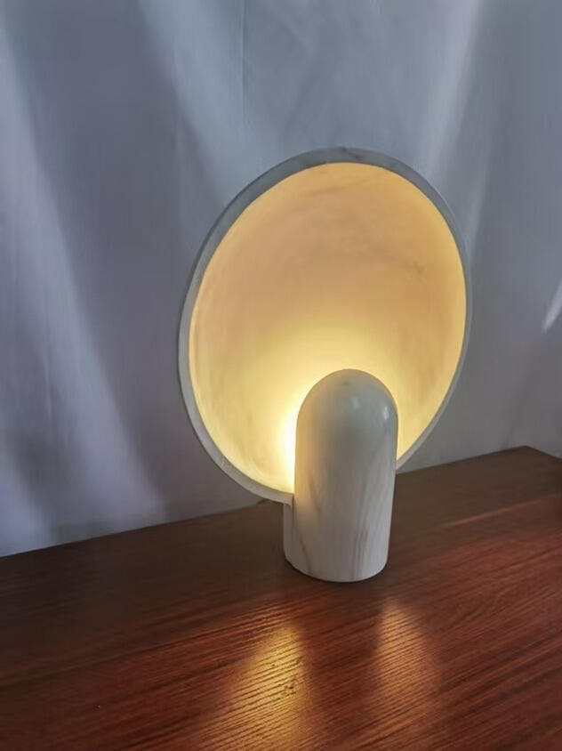 Illuminate your space with the Modern Chinese Minimalist Desk Lamp by Maloona. Crafted from elegant marble and durable all-copper, this semicircular design adds a touch of postmodern flair to any room.