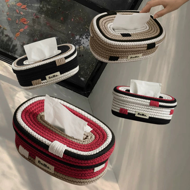 Elevate your living space with the Candy House Series Hand-woven Cotton Tissue Box from Maloona. This charming tissue box adds a playful touch to your coffee table while keeping your napkins organized and accessible.