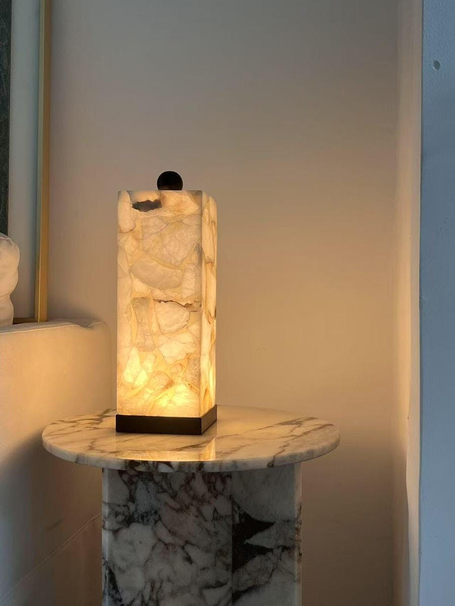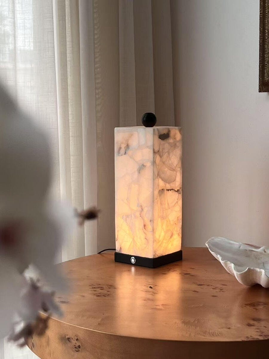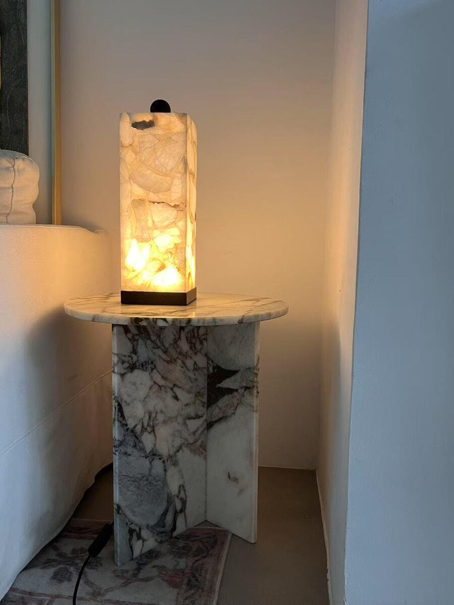 Illuminate your space with the elegance of the Maloona Natural Marble Table Lamp. This designer piece combines French and Italian styles, making it a stunning addition to any living room, study, or bedroom.