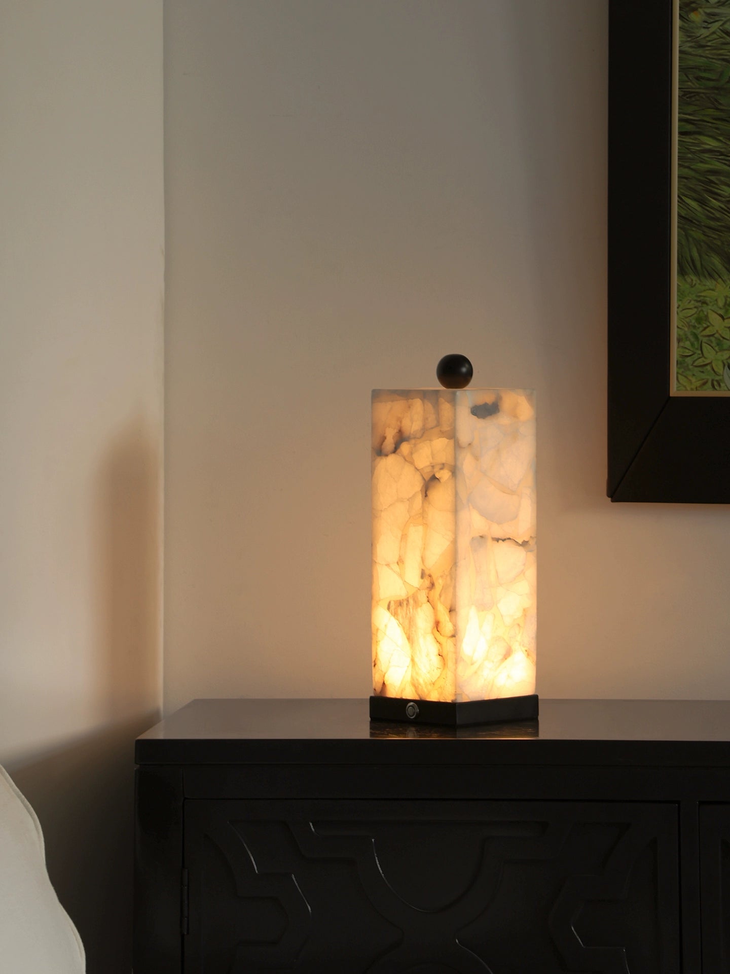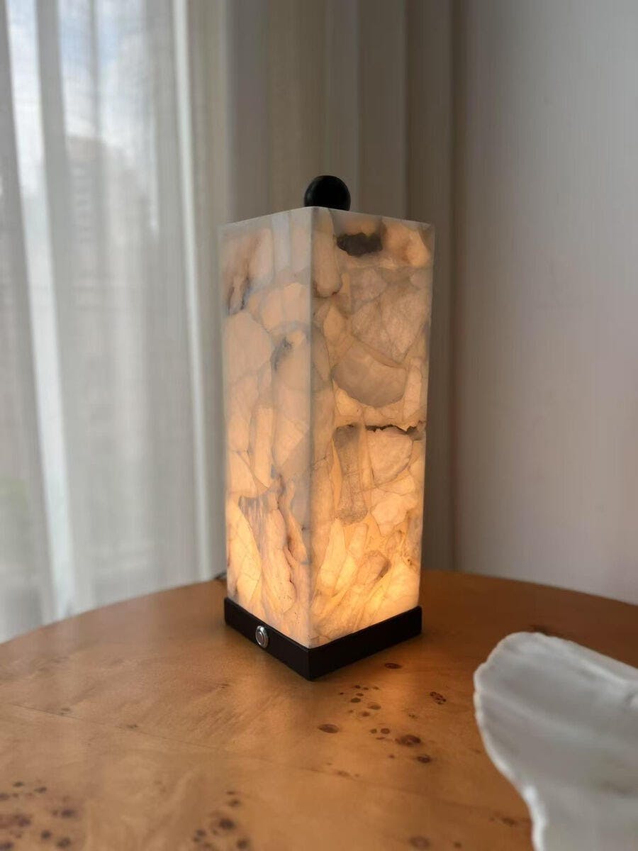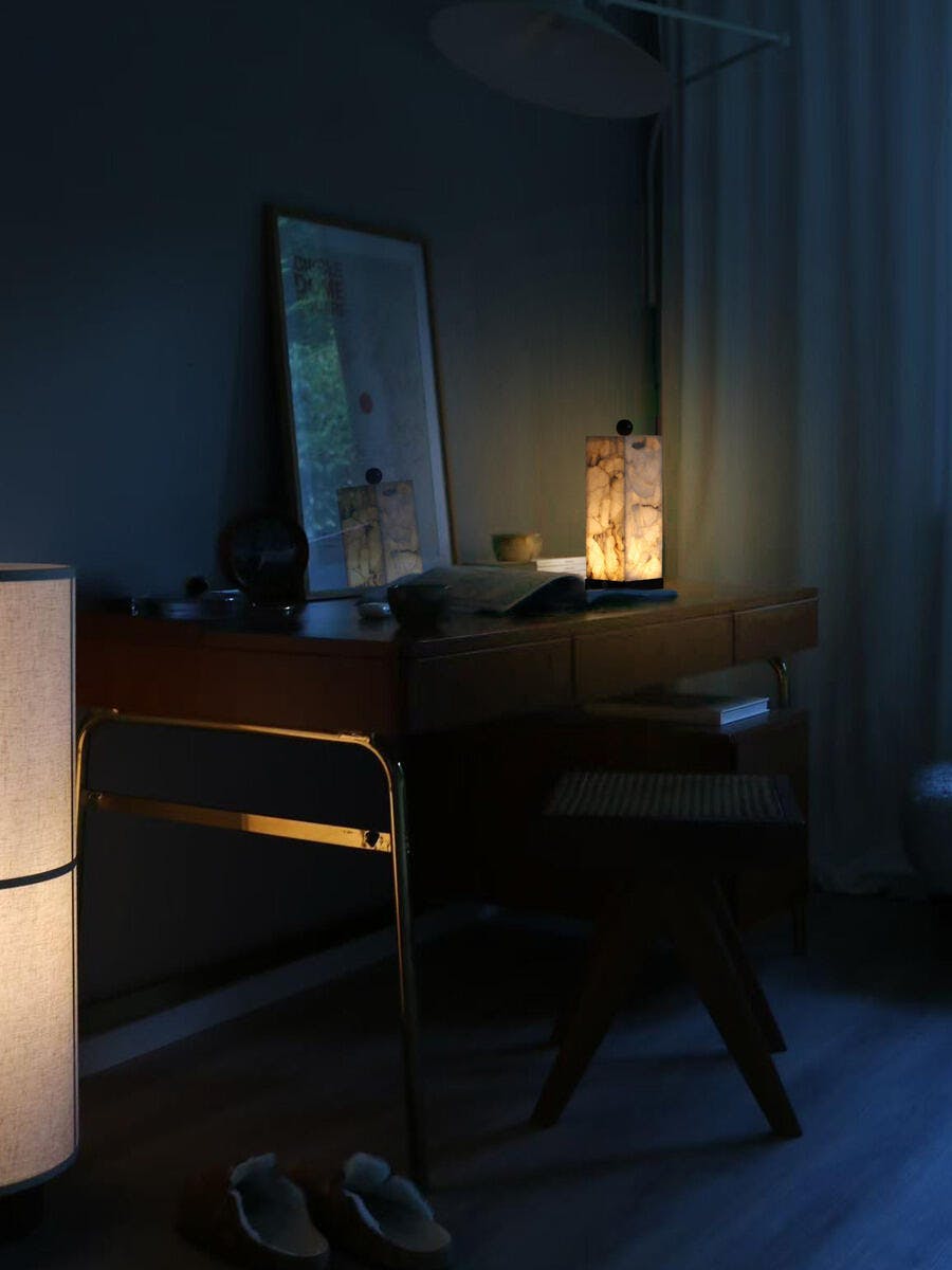 Illuminate your space with the elegance of the Maloona Natural Marble Table Lamp. This designer piece combines French and Italian styles, making it a stunning addition to any living room, study, or bedroom.