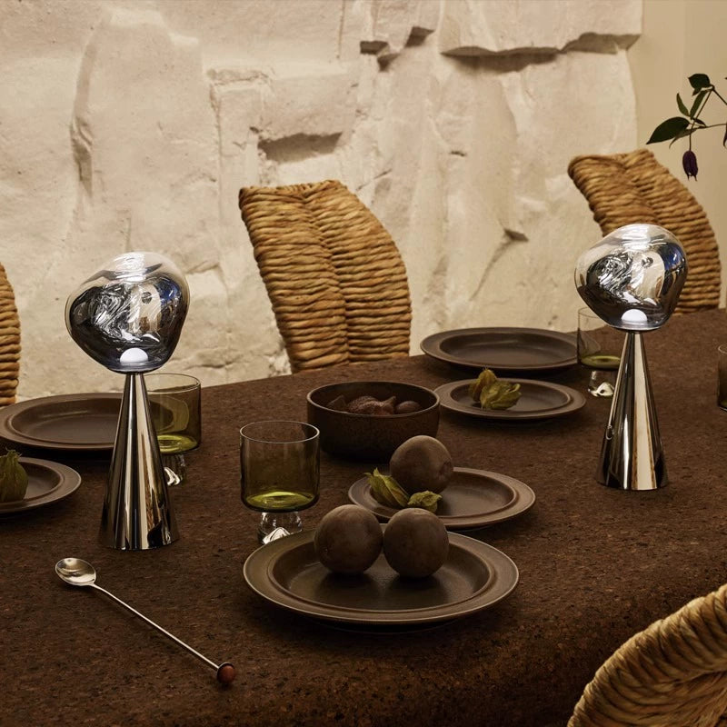 Its unique design and soothing glow create a cozy atmosphere for dining or relaxation.