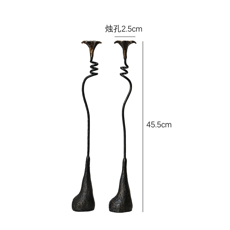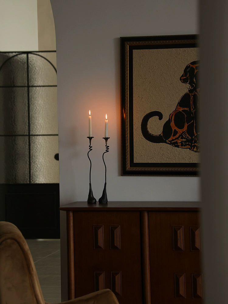 Illuminate your space with the Shape Cast Iron Candlestick Ornament from Maloona. This stunning black metal decoration blends retro charm with modern elegance, perfect for dining tables or side cabinets.