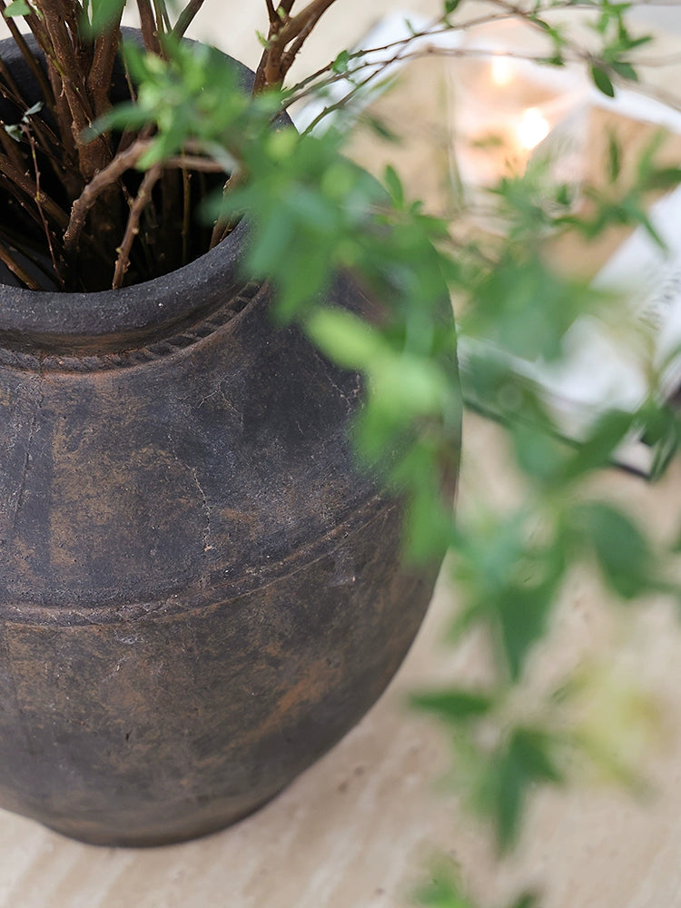 Elevate your living space with the Shape Export Retro Vase from Maloona. Crafted from coarse pottery, this medium-sized vase features a unique niche texture that adds a touch of vintage charm to any room.