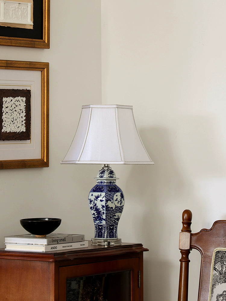 Illuminate your space with the Shape French Court Table Lamp, featuring exquisite blue and white ceramic that blends Chinese artistry with retro elegance. Perfect for adding a touch of sophistication to your living room or bedroom, this lamp serves as both a functional light source and a stunning decorative piece.