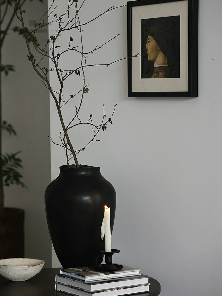 Elevate your home decor with the Shape French Medieval Nanyang Style Ceramic Vase from Maloona. This stunning black and white retro ornament is perfect for showcasing your favorite flowers or as a standalone piece.