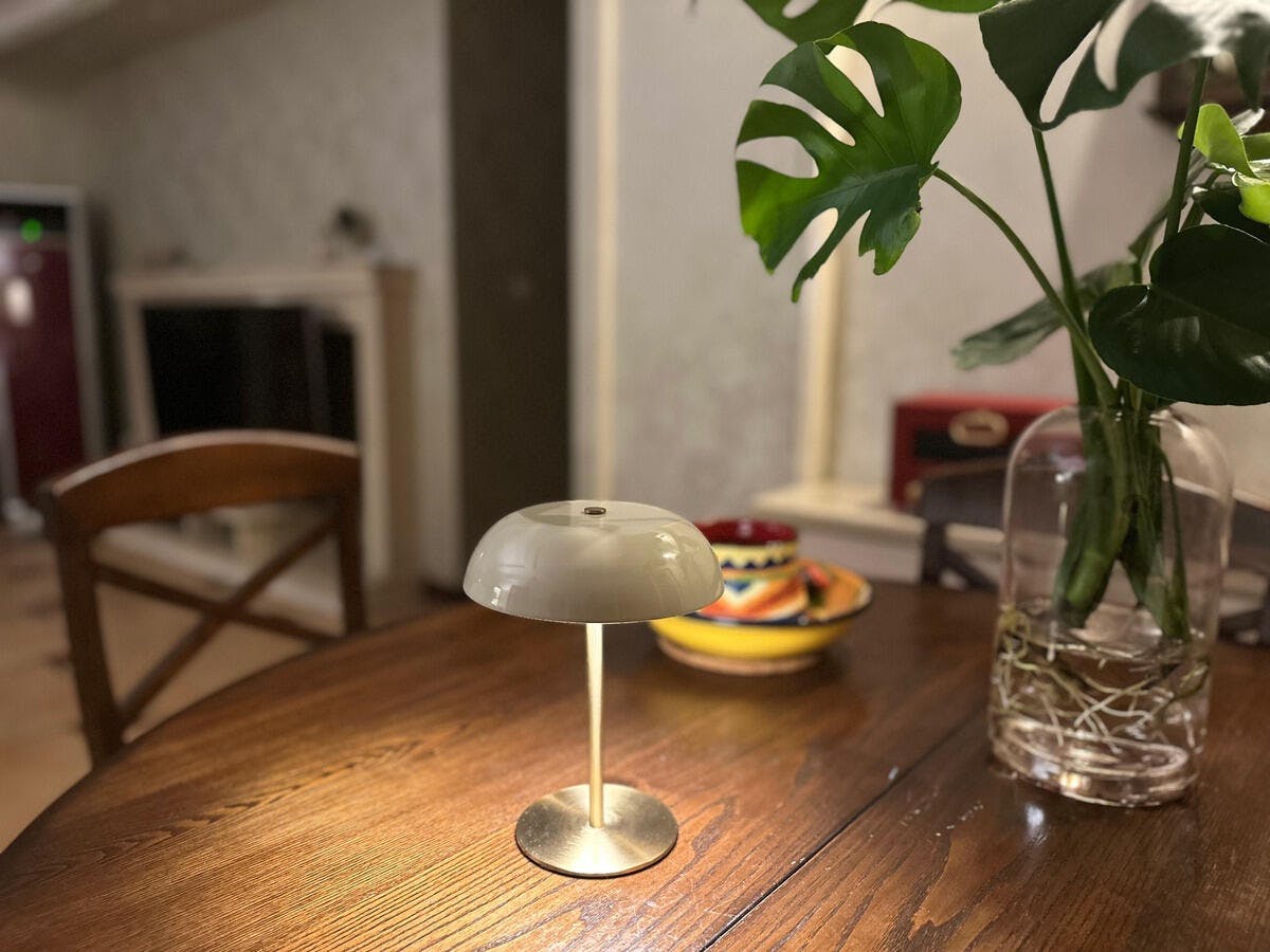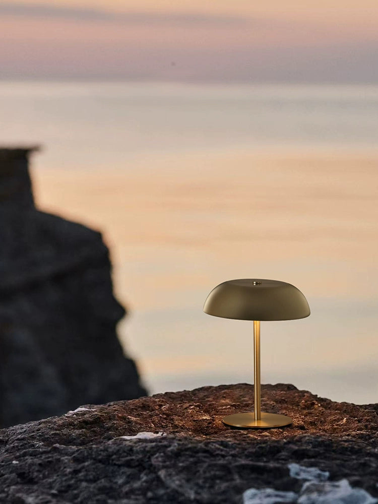 Illuminate your space with the Shape Medieval Charging Small Table Lamp from Maloona. This retro metal lamp adds a touch of vintage charm to any room, whether it's your bedside, living room, or outdoor setting.