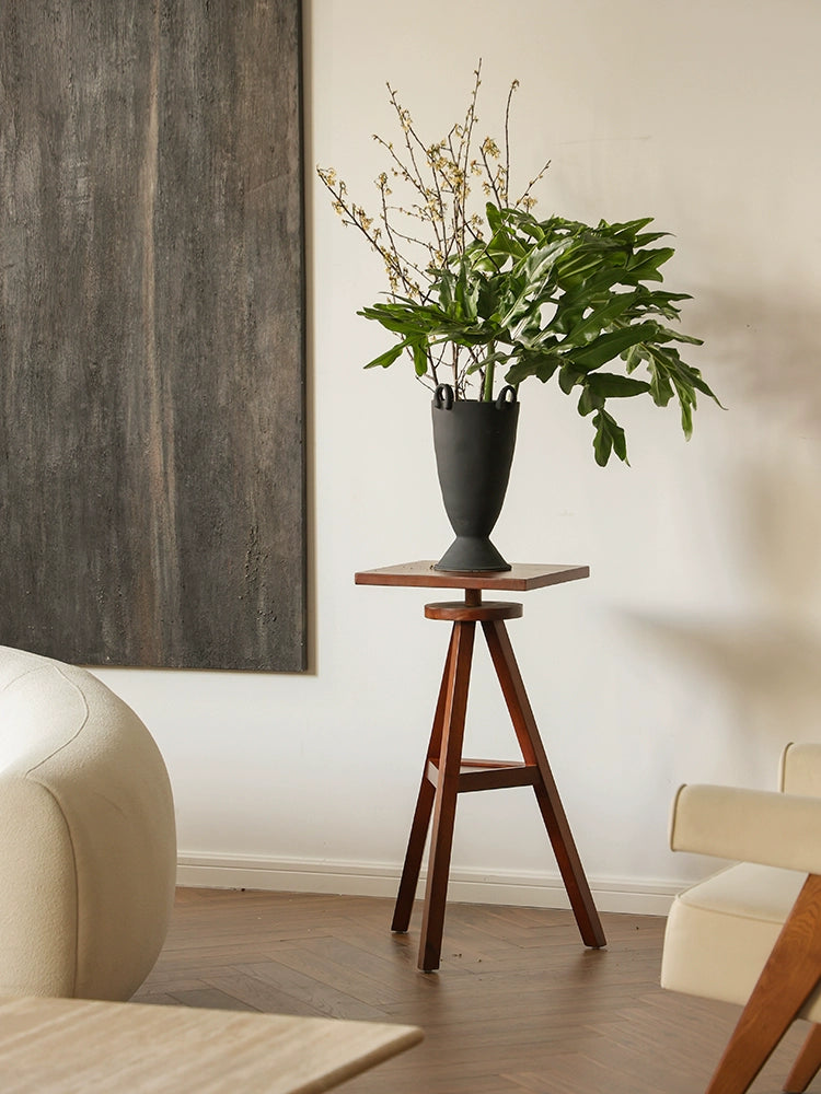 Elevate your living space with the Shape Medieval Flower Stand from Maloona. This stunning tripod design features a solid wood base and double-layer storage, perfect for showcasing your favorite blooms or decorative items.