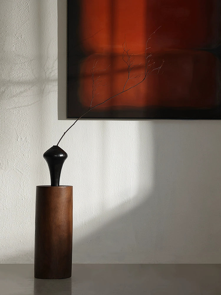 The curved wall in the hallway perfectly fits the camphor wood stump, paired with the artwork (not hung yet) and vase, creating a lovely atmosphere. The seller was excellent in material selection and shipping!
