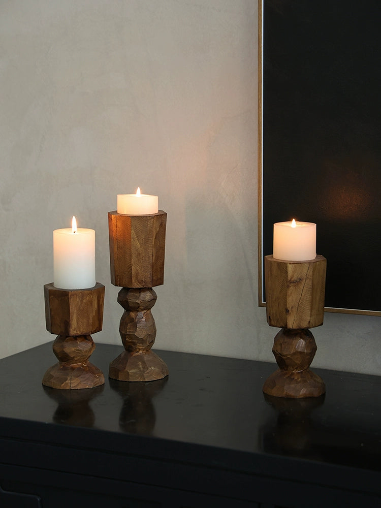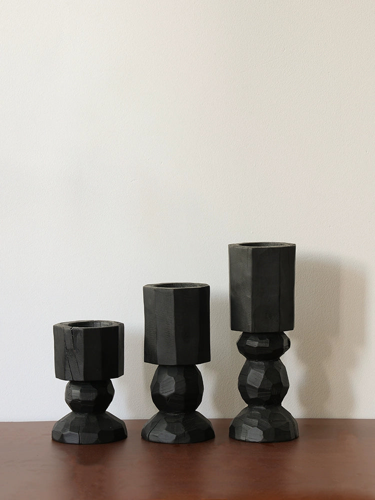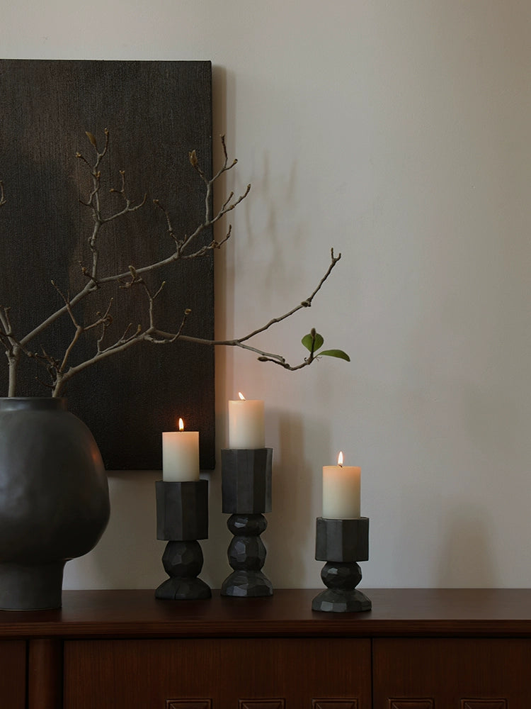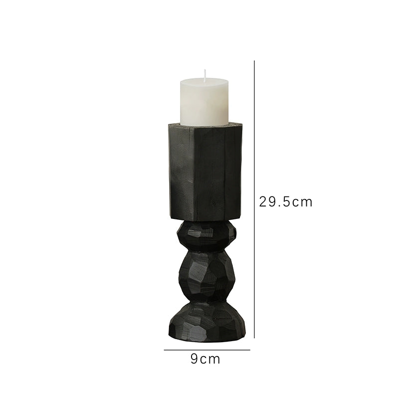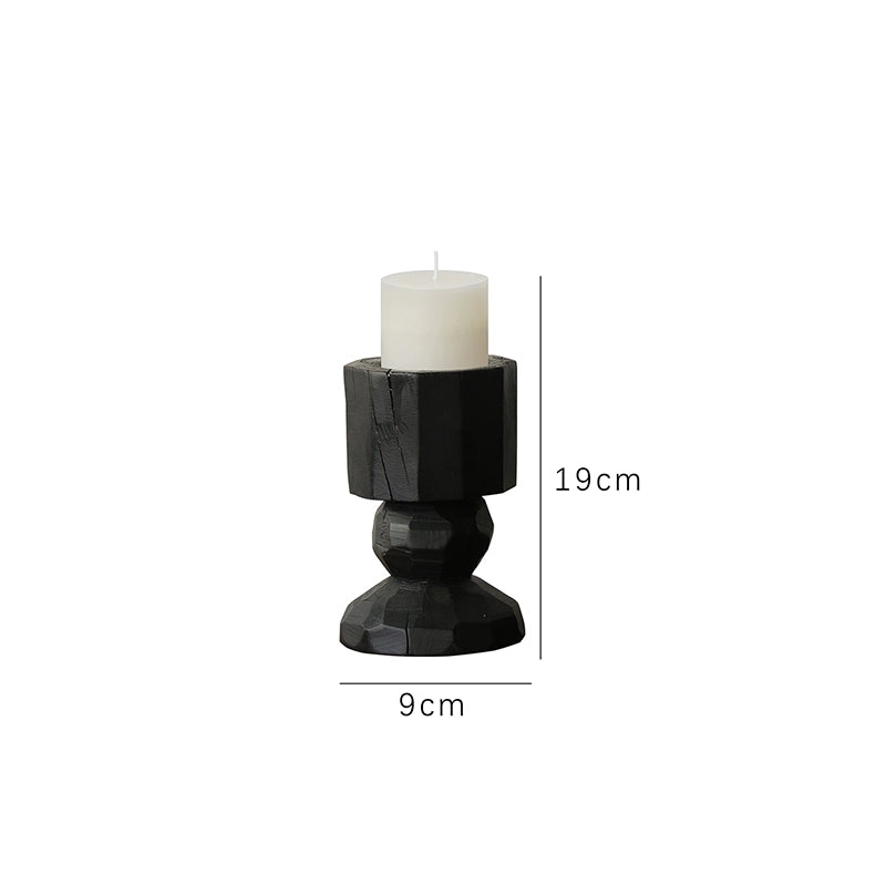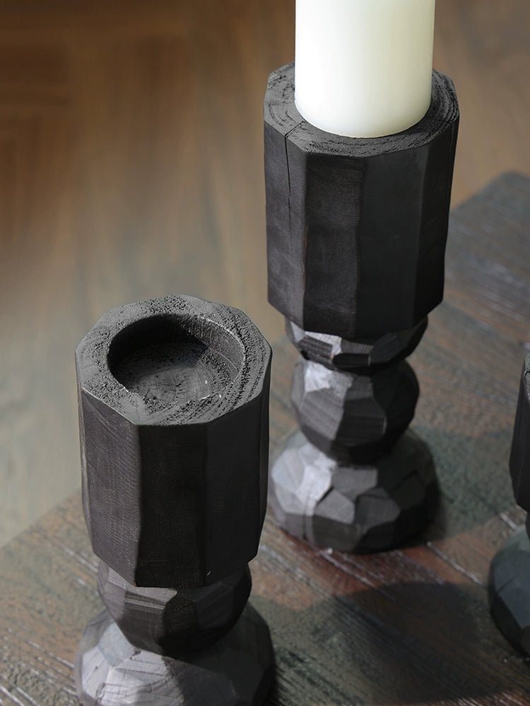 Illuminate your space with the Shape Wabi-sabi Carbonized Wood Candlestick from Maloona. This unique piece combines solid wood craftsmanship with a geometric design, perfect for adding a touch of elegance to your dinner table.