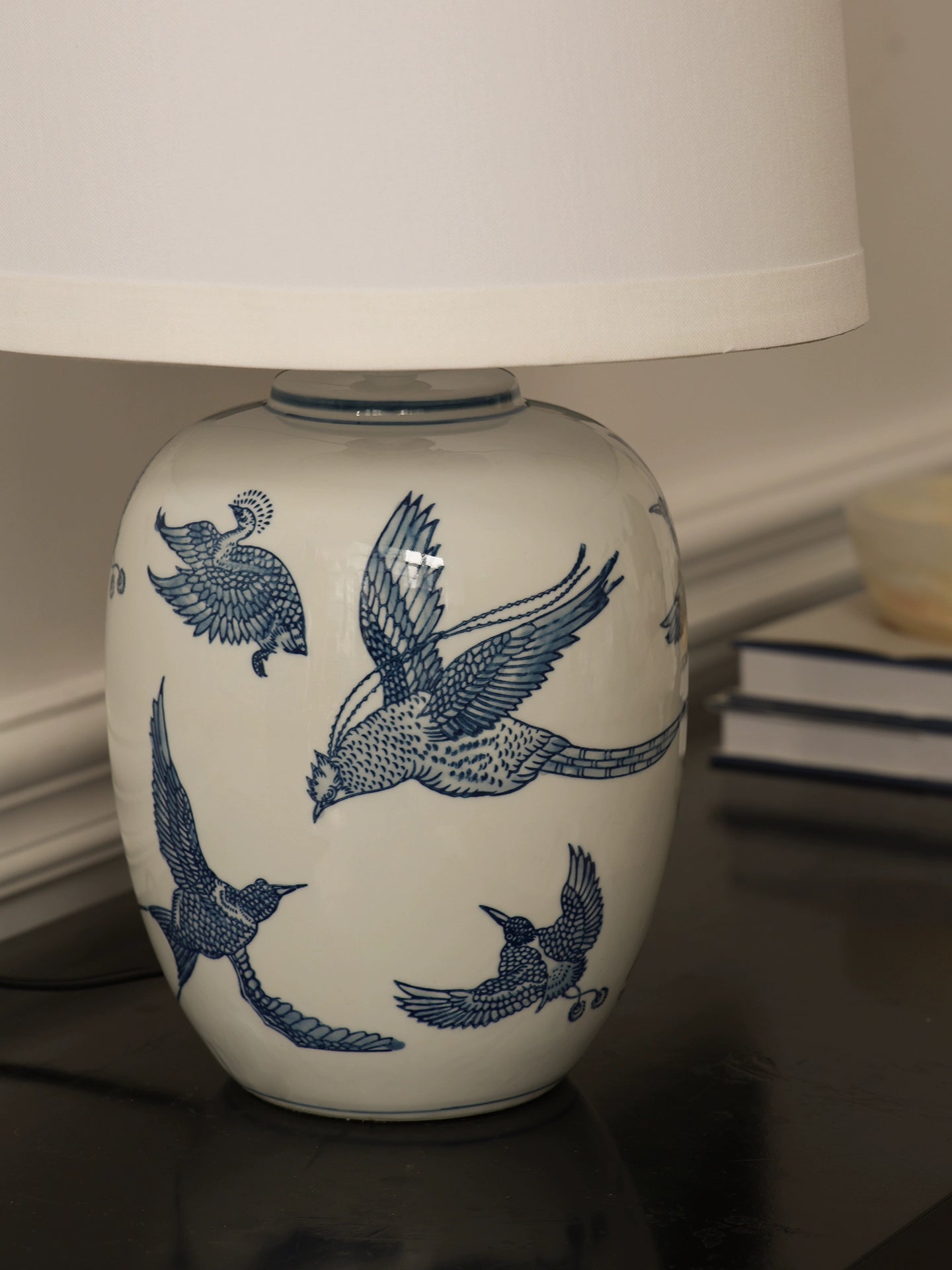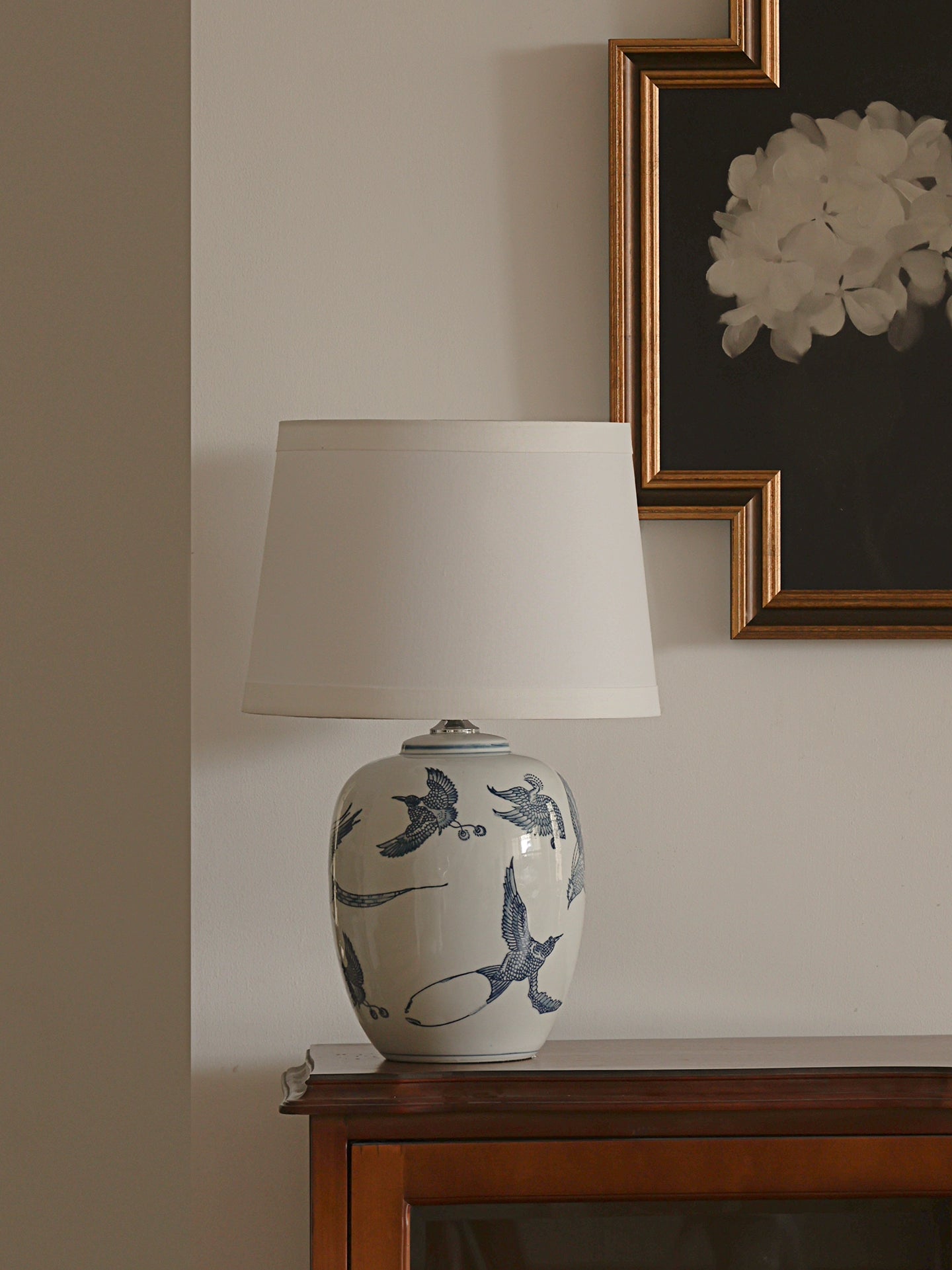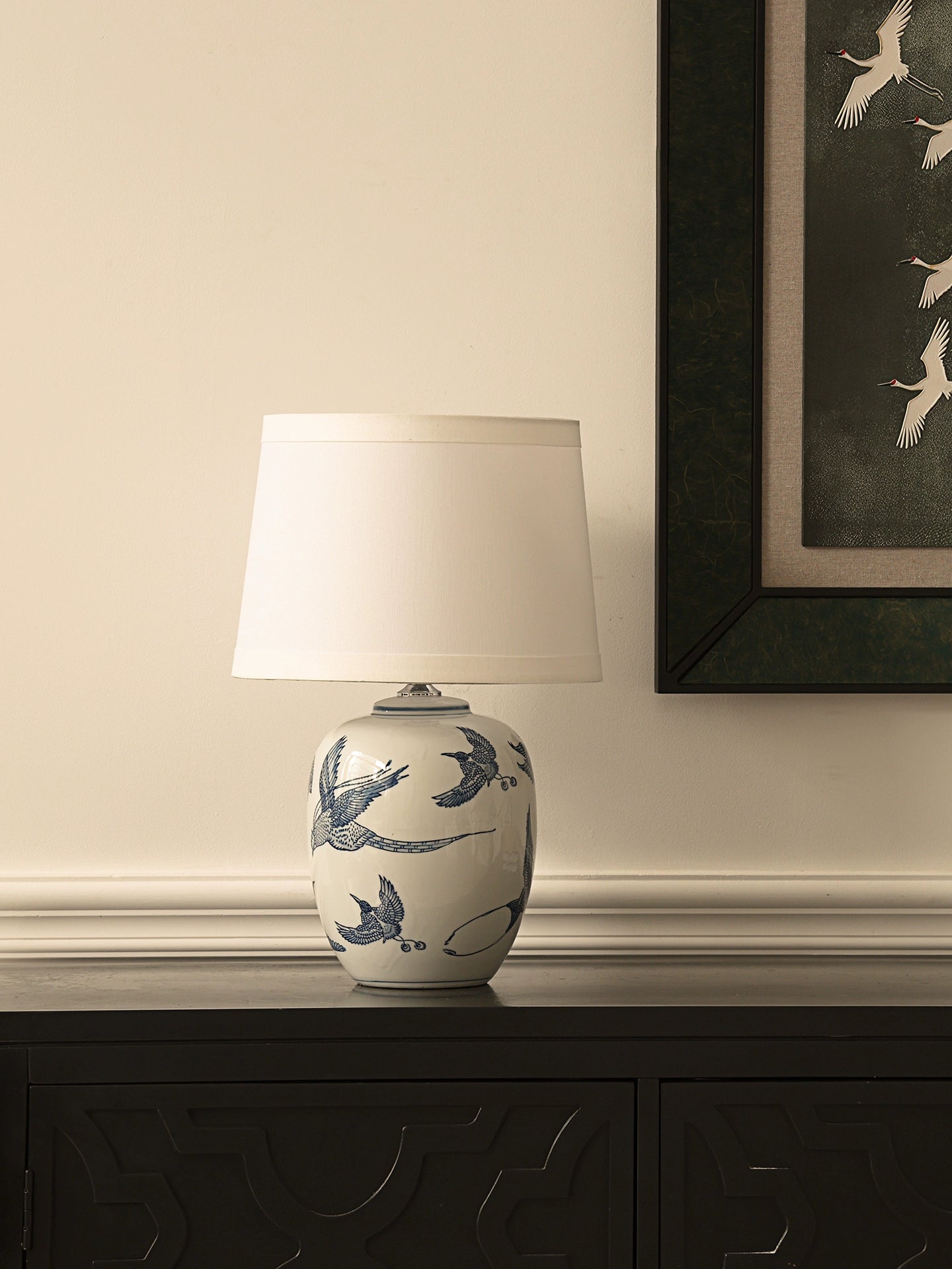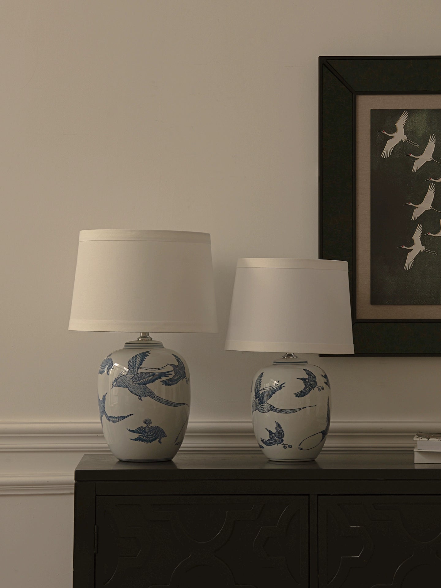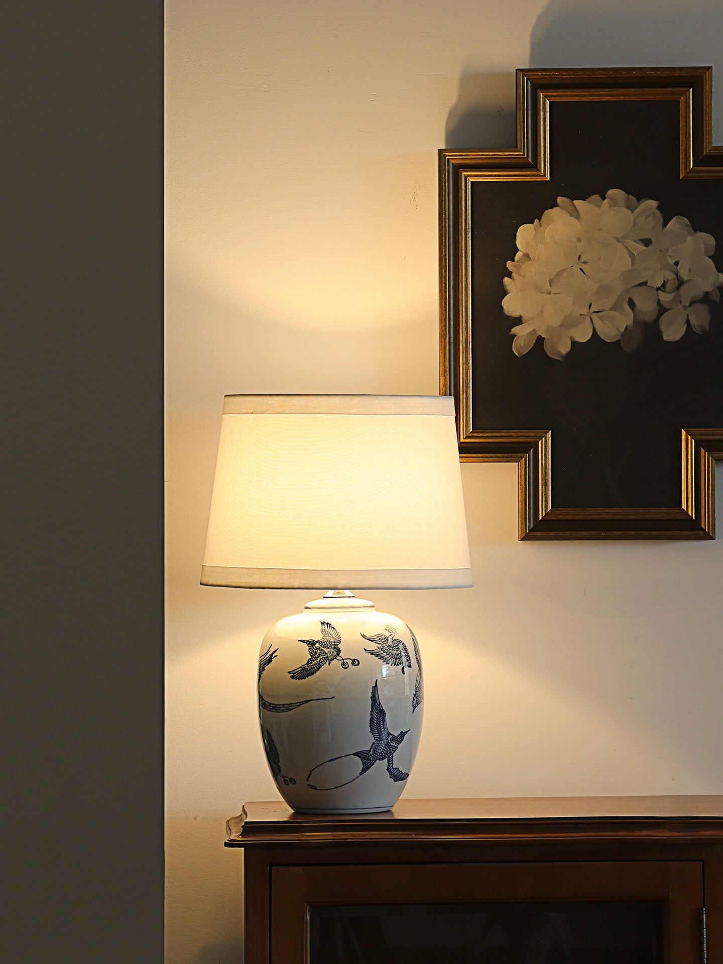 Illuminate your space with the elegant Shaped French Chinese Style Blue and White Ceramic Desk Lamp. Perfect for your living room, bedroom, or sofa corner, this lamp adds a touch of sophistication and ambient charm to any setting.