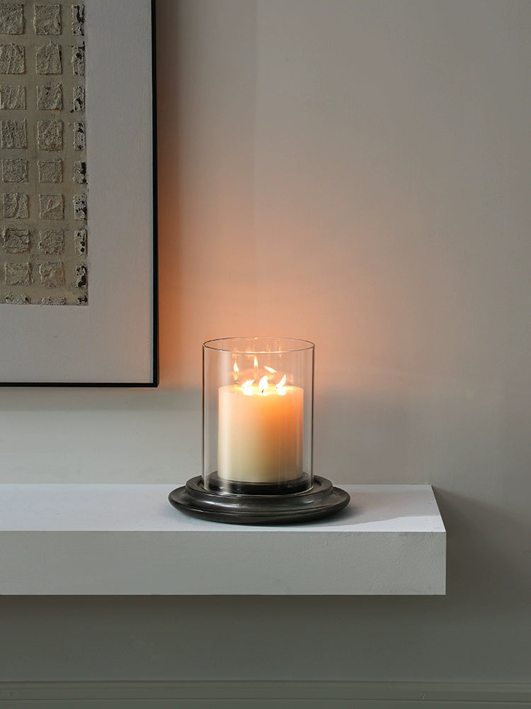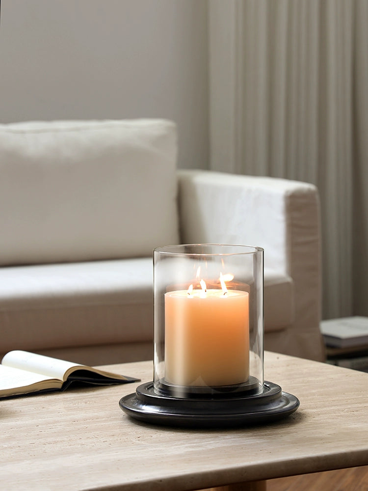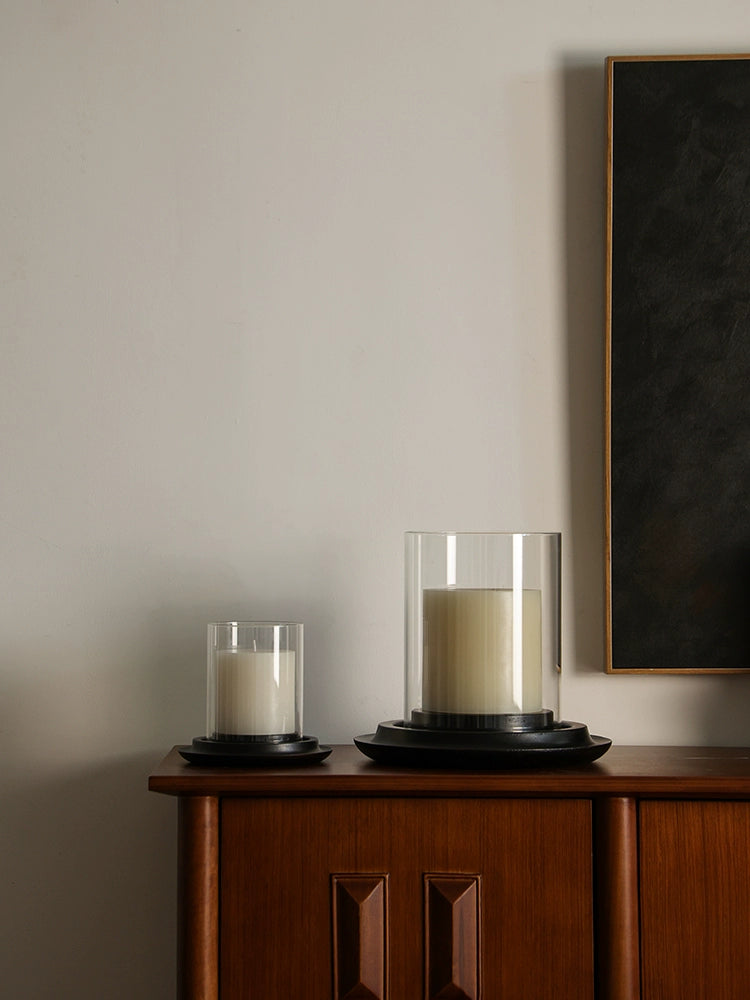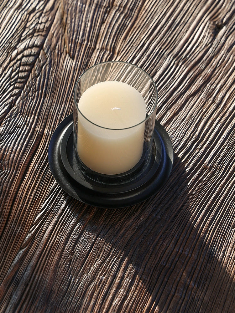 Elevate your space with the Shaped Large Wabi Candlestick from Maloona, designed to create a romantic ambiance for any occasion. Crafted from solid wood and topped with a glass cover, this elegant piece is perfect for weddings, restaurants, or cozy home settings.
