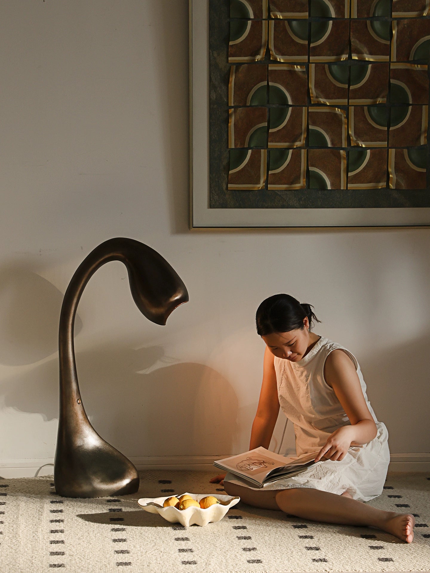 Illuminate your space with the Retro Wabi Wind Swan Lamp from Maloona. This unique floor lamp combines medieval charm with modern design, making it a perfect accent for any living room or workspace.