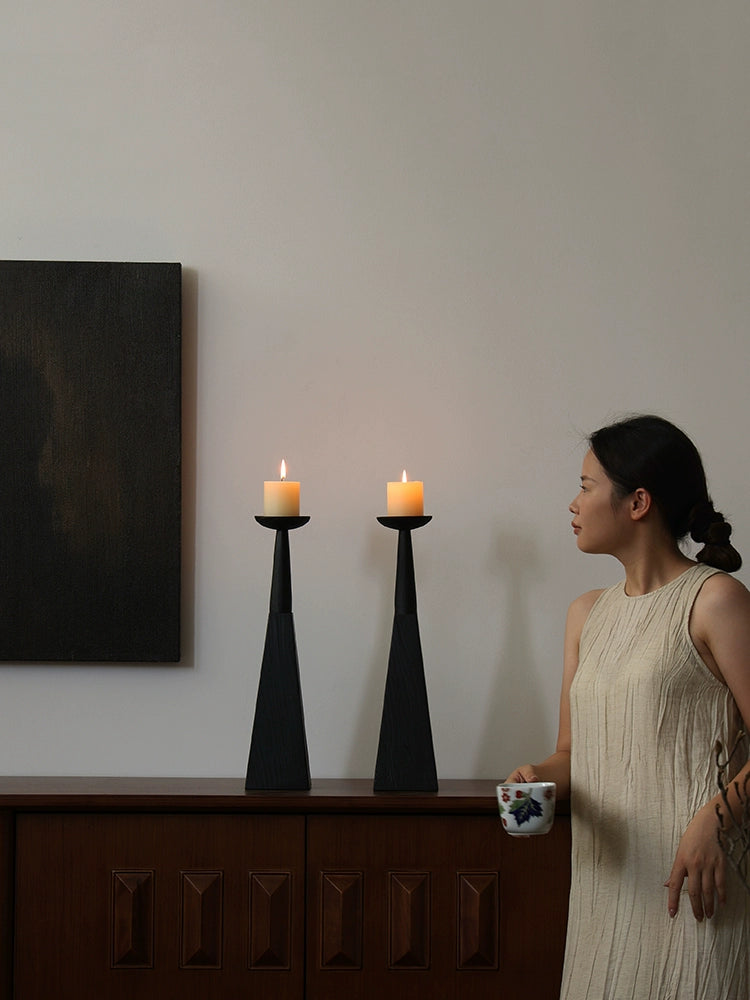 Illuminate your space with the Shaped Wabi Candle Holder from Maloona, a stunning blend of Japanese and Chinese design elements. Crafted from solid carbonized wood, this decorative ornament adds a touch of Zen to any room.