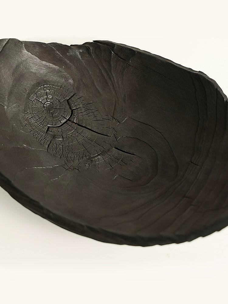 Elevate your living space with the Shaped Wabi-sabi Wind Carbonized Wood Fruit Plate. This stunning black Japanese-style ornament combines rustic charm with modern aesthetics, perfect for any home decor.