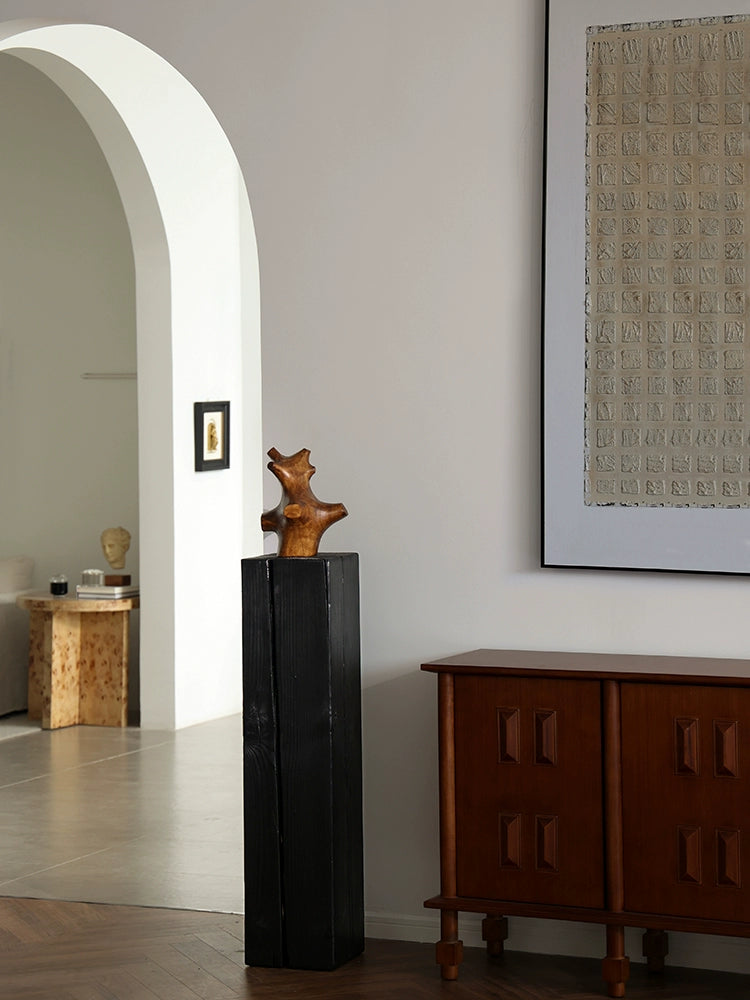 Transform your space with the Maloona Solid Wood Sculpture Ornament, a stunning floor-to-ceiling carbonized wood pillar that embodies the essence of Wabi-sabi. Perfect for entranceways or staircase corners, this unique piece adds a touch of natural elegance and warmth to any decor.