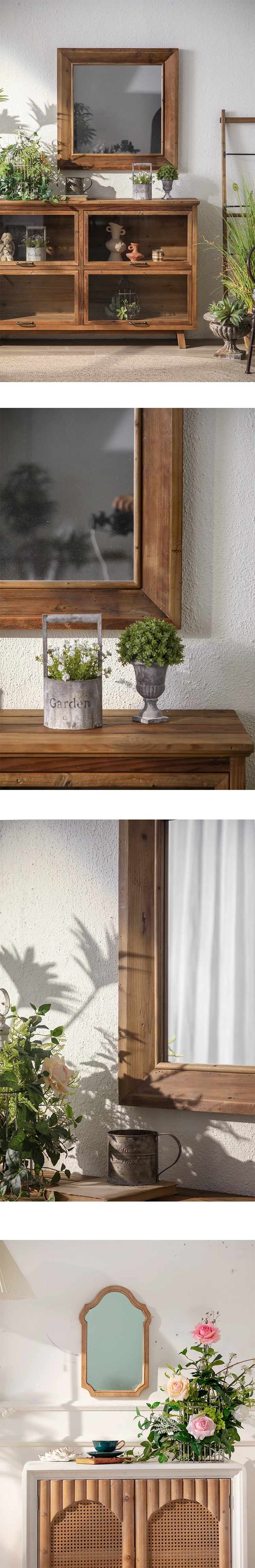 Elevate your farmhouse decor with the Maloona Square Natural Wood Bathroom Vanity Mirror. This versatile mirror can be hung vertically or horizontally, adding a rustic charm to any space.
