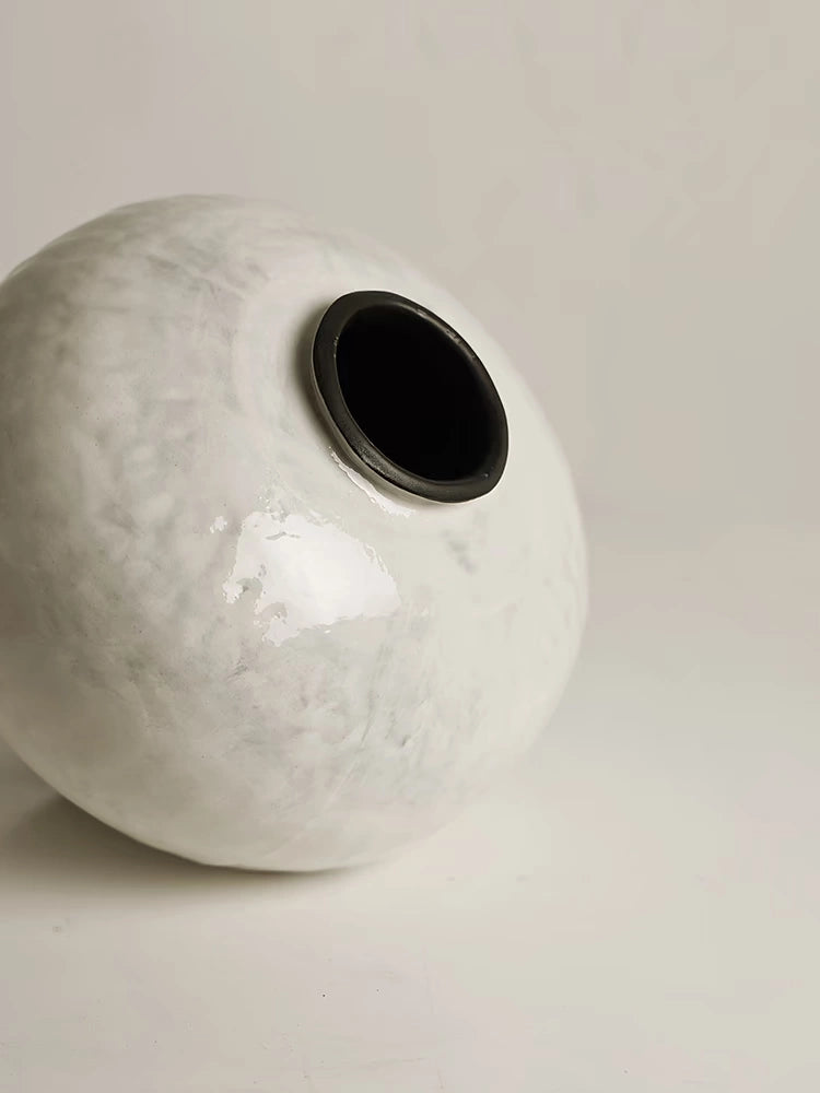 Enhance your living space with the exquisite Vintage Vase Moon Jar from Maloona. This Japanese handmade piece showcases the delicate artistry of Jingdezhen white flower ware, perfect for adding a touch of elegance to any room.