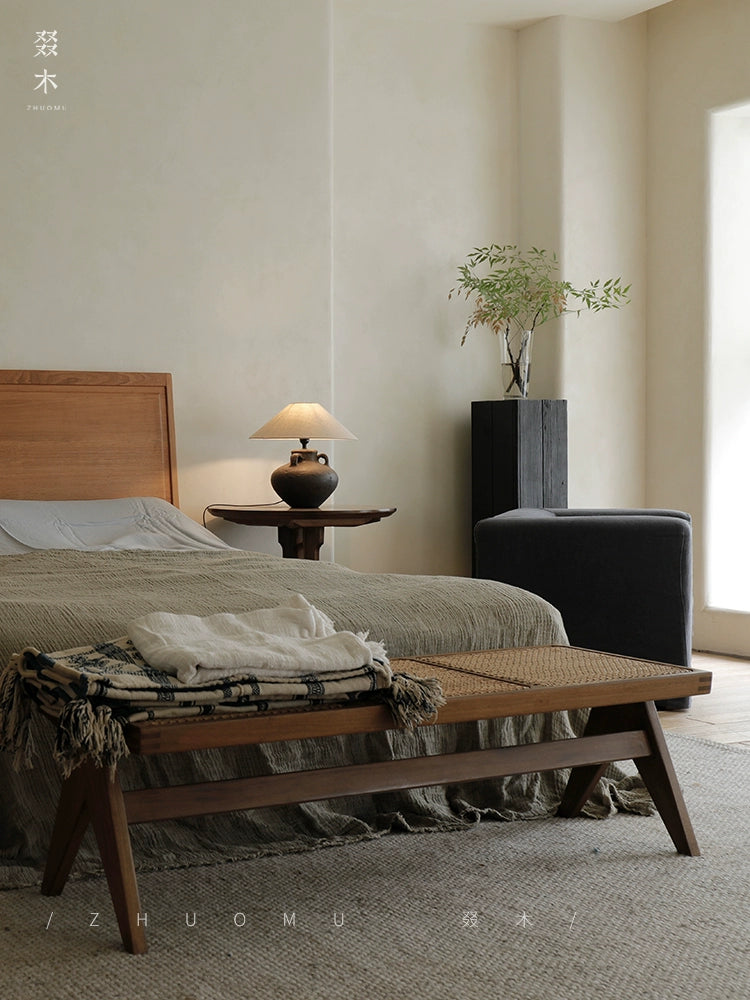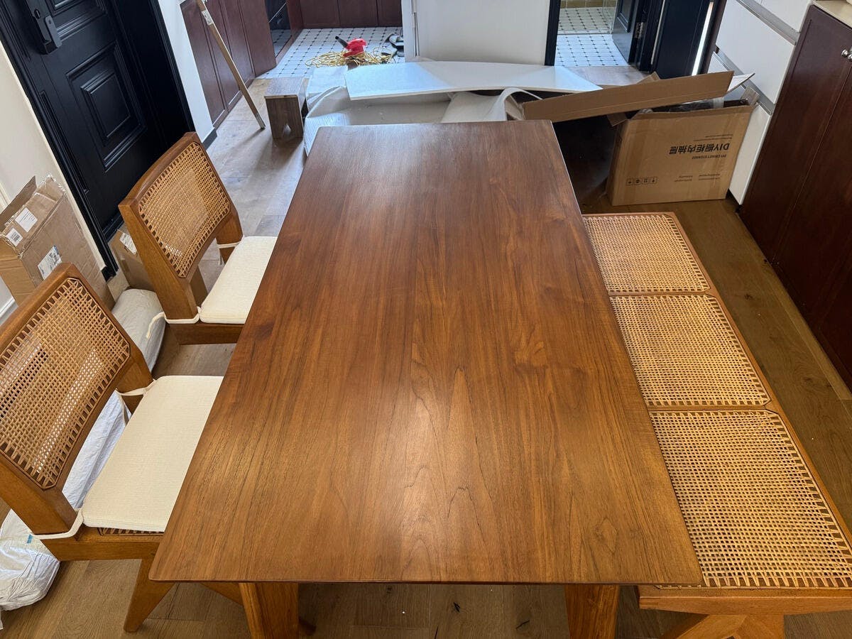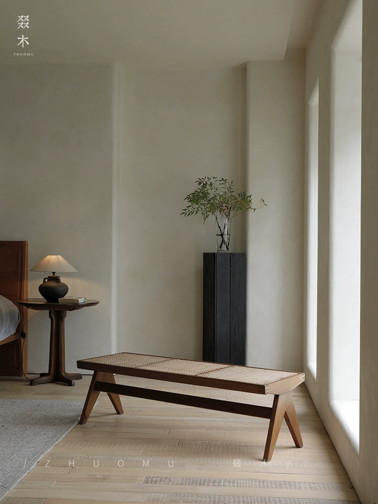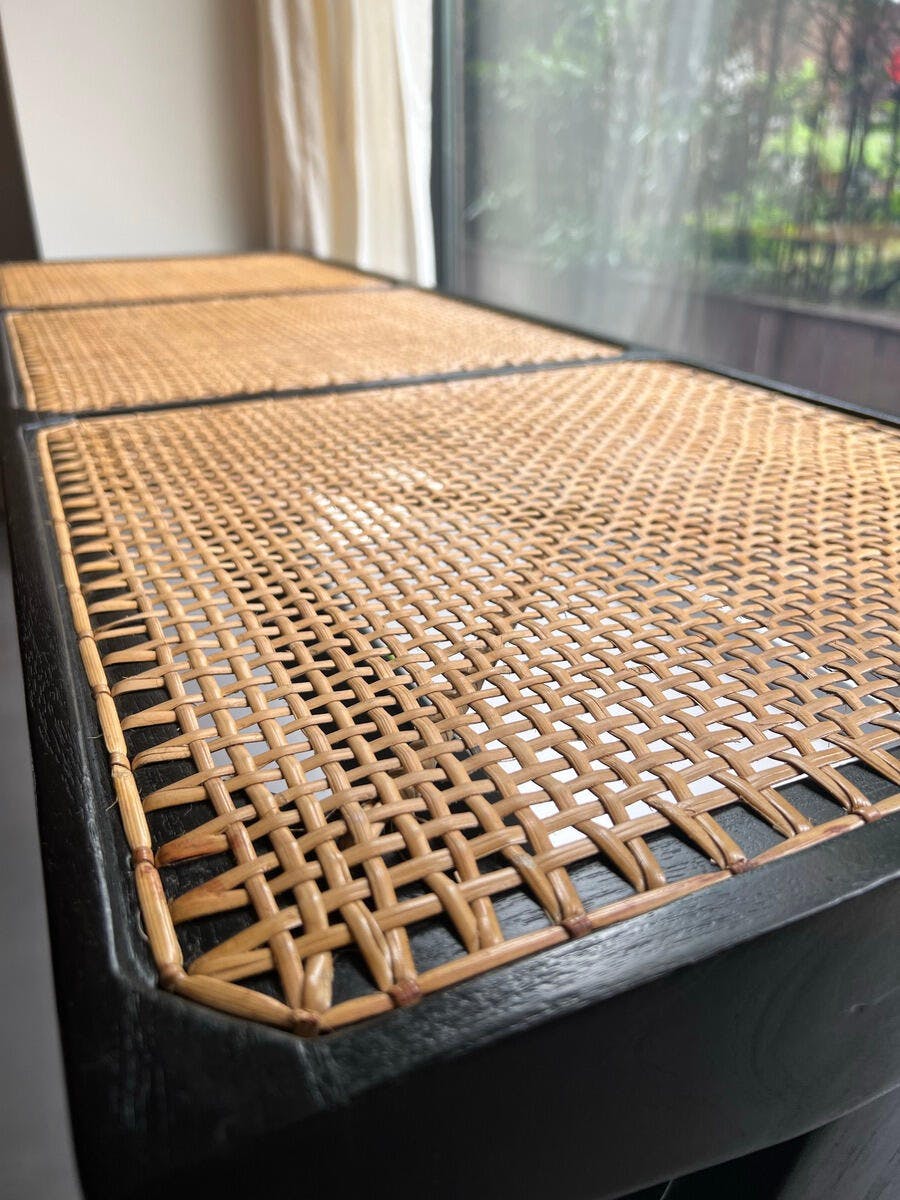 Elevate your dining experience with the Chandigarh Dining Table Bench, expertly crafted from solid wood and rattan. This versatile piece doubles as a stylish shoe-changing stool or bedside seat, perfect for any room in your home.