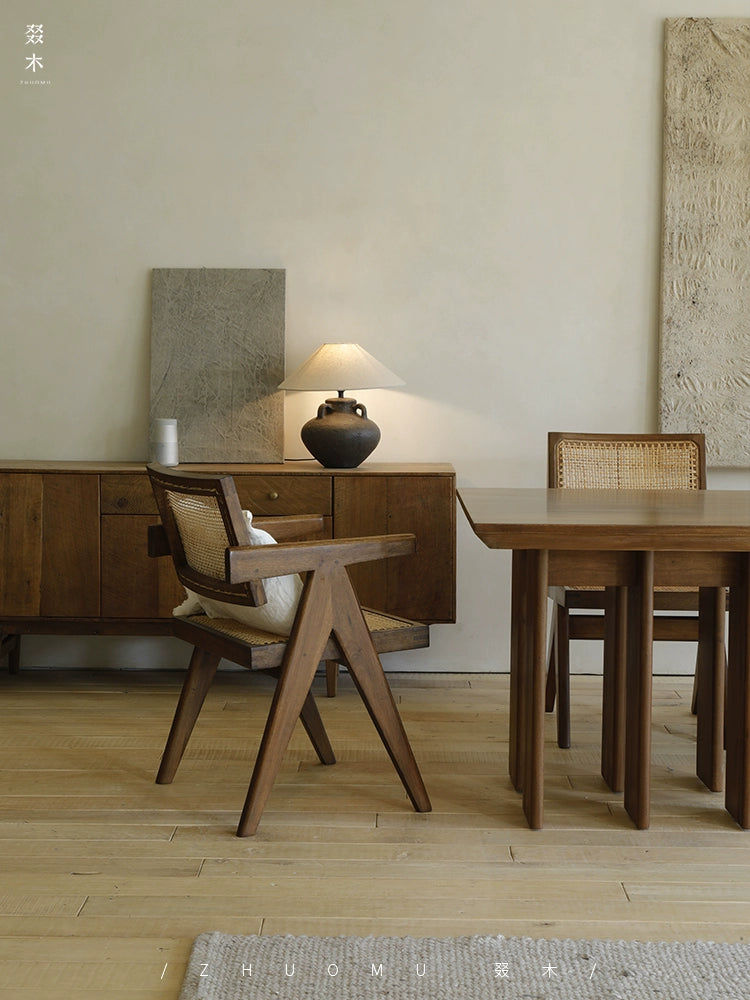 Elevate your dining space with the Chandigarh PJ Chair by Maloona. Crafted from solid teak, this Wabi-sabi inspired piece combines retro charm with modern functionality, perfect for both dining and study areas.