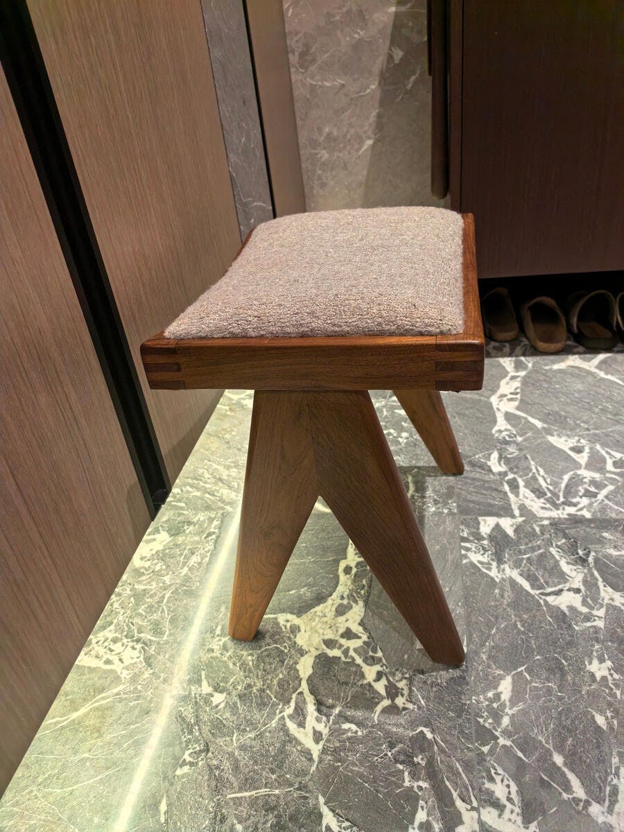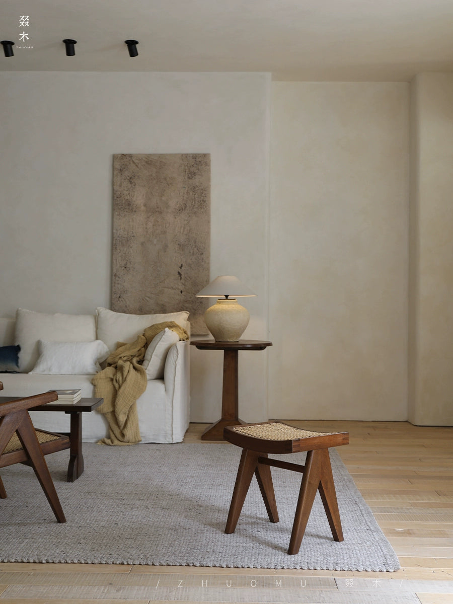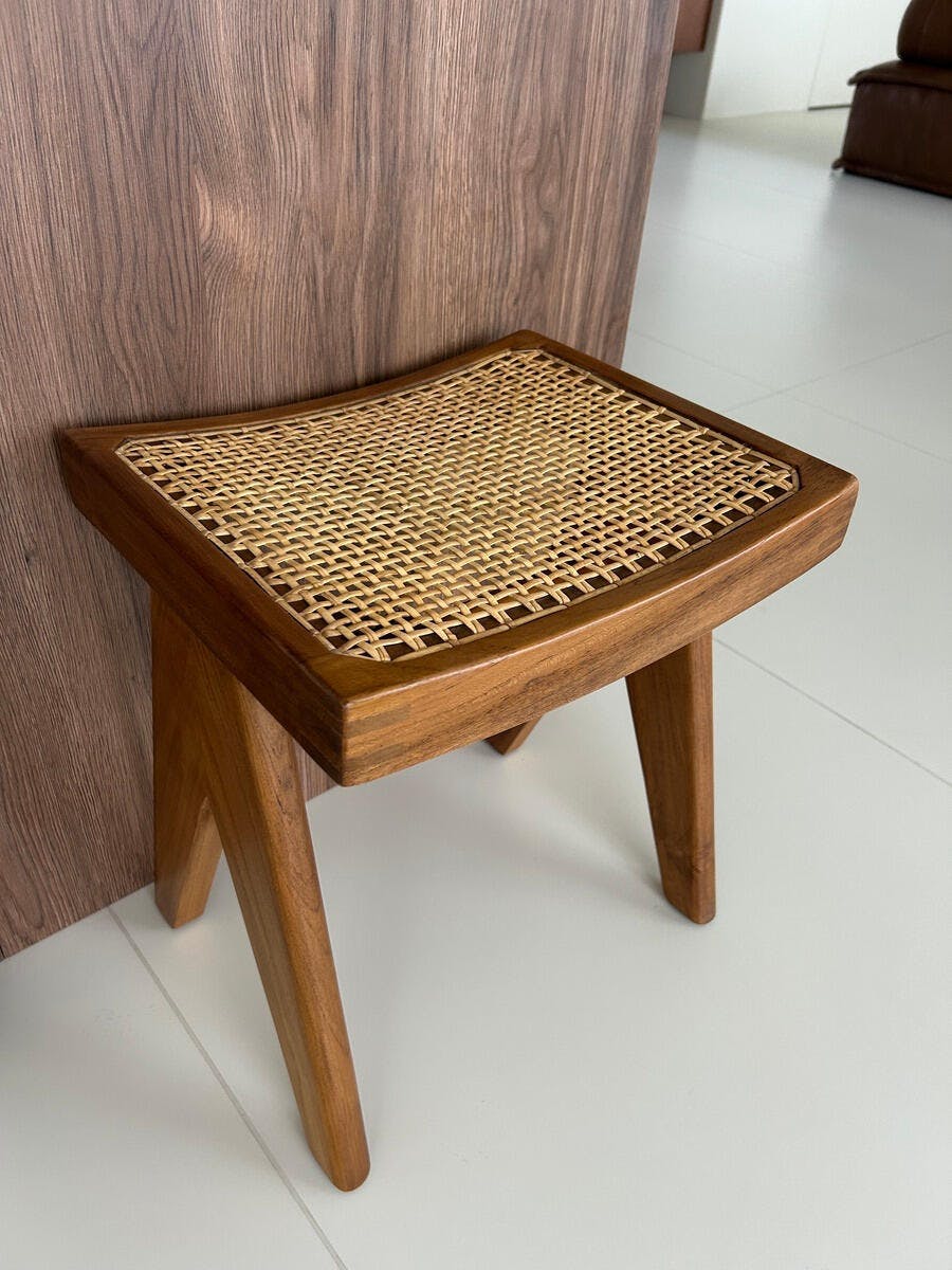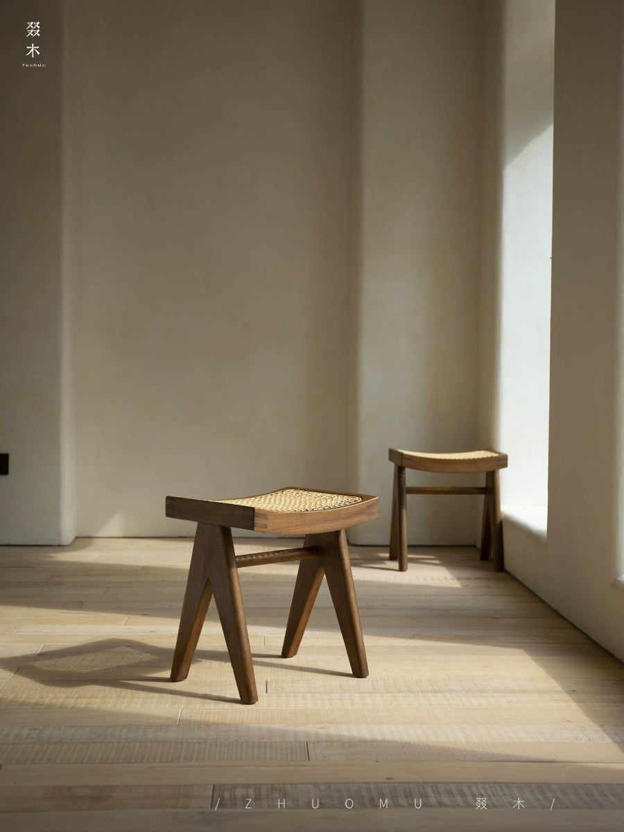 Elevate your entryway with the Wood/Chandigarh Stool, a perfect blend of solid wood and rattan that embodies Wabi-Sabi aesthetics. This versatile low stool is ideal for shoe changing and adds a touch of rustic charm to any space.